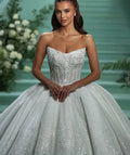Customized Shiny Ball Gown Wedding Dress Boat Neck Off The Shoulder Beaded Applique Princess Bridal Gowns Vestidos De Novia