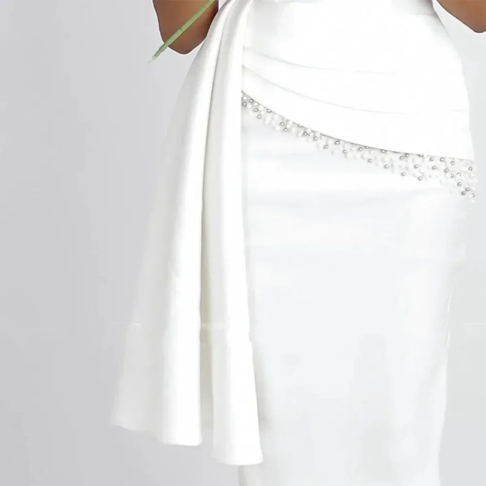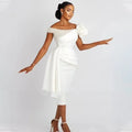 Customized Short Wedding Dresses Off the Shoulder Pearls Wedding Gown for Bride Draped Tea Length Vestidos de novia