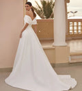 Customized Simple Satin V Neck Wedding Dress A-Line Off The Shoulder For Women Elegant Bridal Gown Robe De Marie