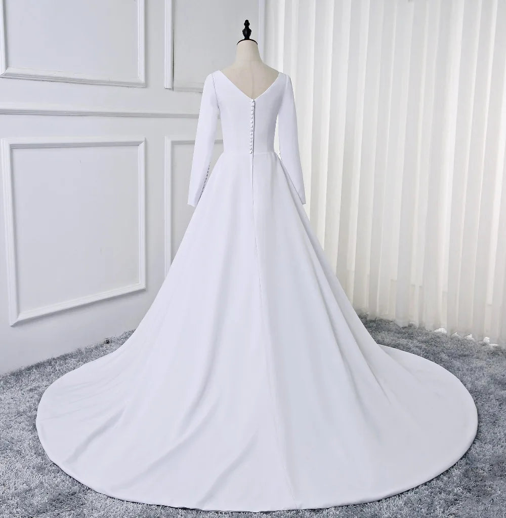 Customized Soft Satin Muslim Wedding Dress Long sleeve A Line Simple Bridal Gown robe de mariage 2025 Vestido De Noiva