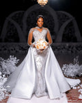 Customized Spark Heavy Crystals Beads Mermaid Wedding Dress with Removable Satin Skirt Full Sleeves Button Back Bridal Gown Robe
