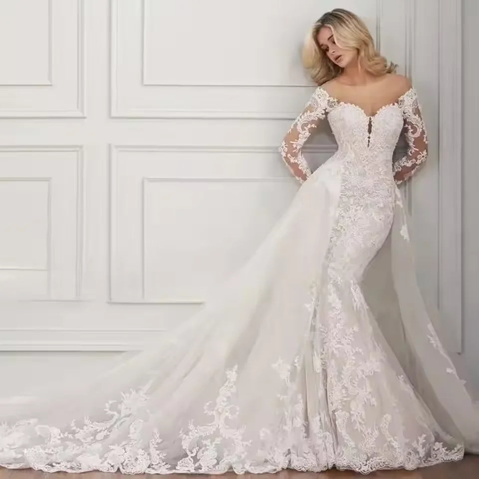 Customized Sweetheart Appliques Lace Long Sleeves Mermaid Wedding Dress 2025 Floor Length Detachable Train Bridal Gown Robes