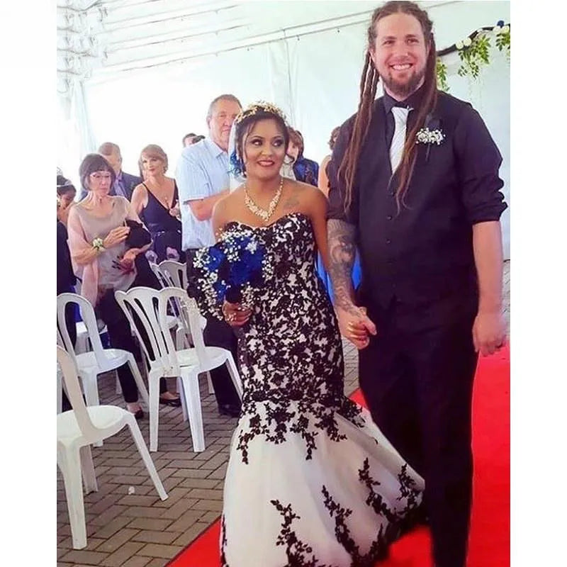 Customized White and Black Lace Wedding Dresses Mermaid African Sweetheart Corset Back Appliques Bridal Gowns Robe De Mariee
