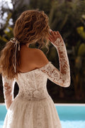 Customized White Lace Wedding Dresses Long Sleeve Pearls African A-line Bride Dress For Women Off Shoulder Vestidos De Novia