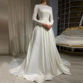Customized White Long Sleeves Wedding Dresses 2025 Satin Woman Elegant Muslim Bridal Gowns Vestidos De Novia Gelinlik