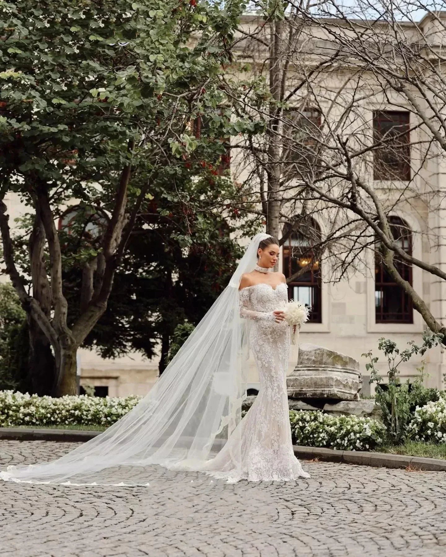 Customzied Lace Wedding Dresses Mermaid Off Shoulder Long Sleeves Garden Wedding Gowns Vestidos De Novia Brides Dresses