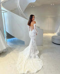 Customzied Sexy Long Sleeves Full Lace Applique Mermaid Wedding Dresses Sweep Train Vestido de novia Bride Dresses