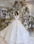 Customzied V-neck Long-sleeved Ball Gown Lace Applique wedding dress vestidos de novia Luxury amanda novias official