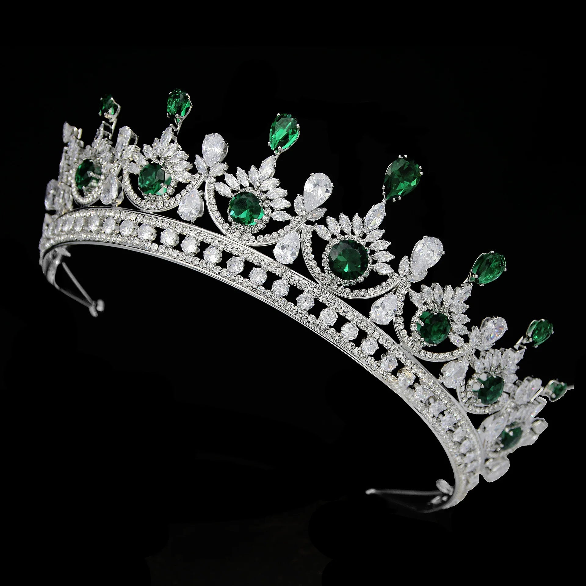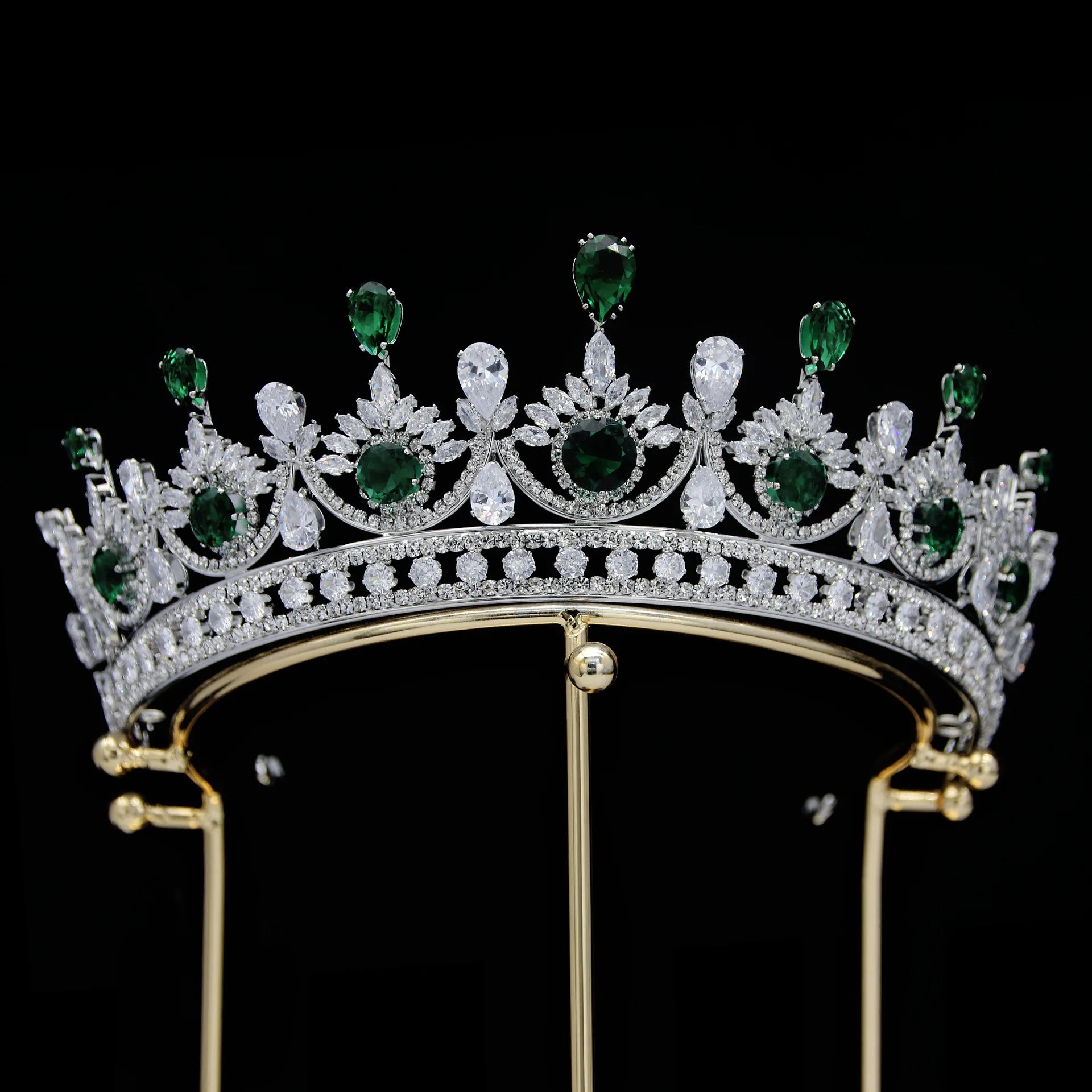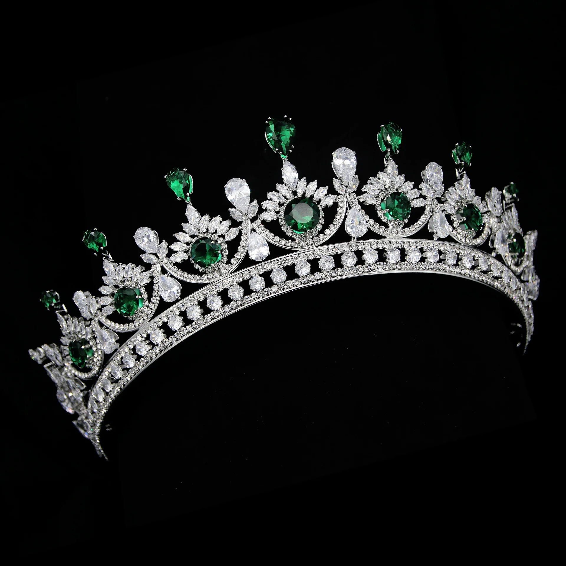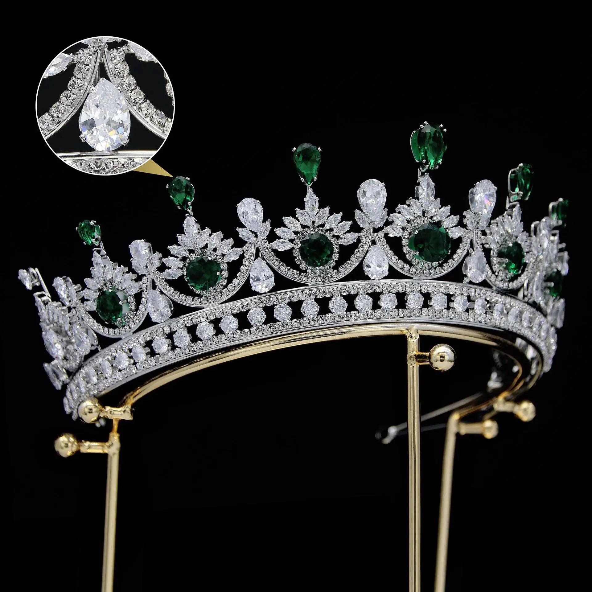 CZ Green Zirconia Tiaras and Crowns AAA Zircon Diadem For Brides Women Pageant Prom Wedding Accessories Bridal Hair Jewelry
