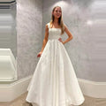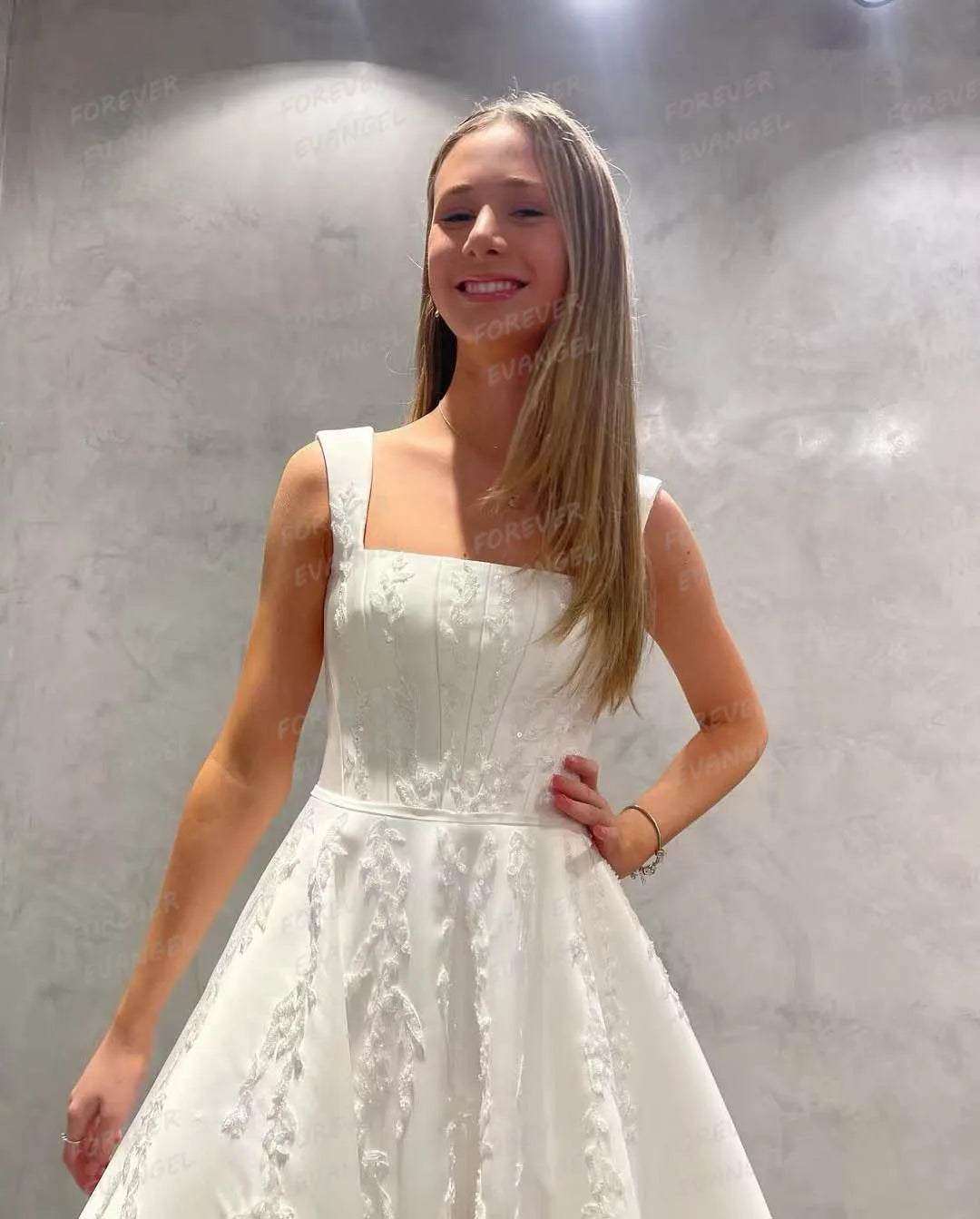 Elegant Appliques Wedding Dresses A Line Woman's Square Collar Sleeveless Bride Gowns Formal Satin Vestidos De Novia Customized
