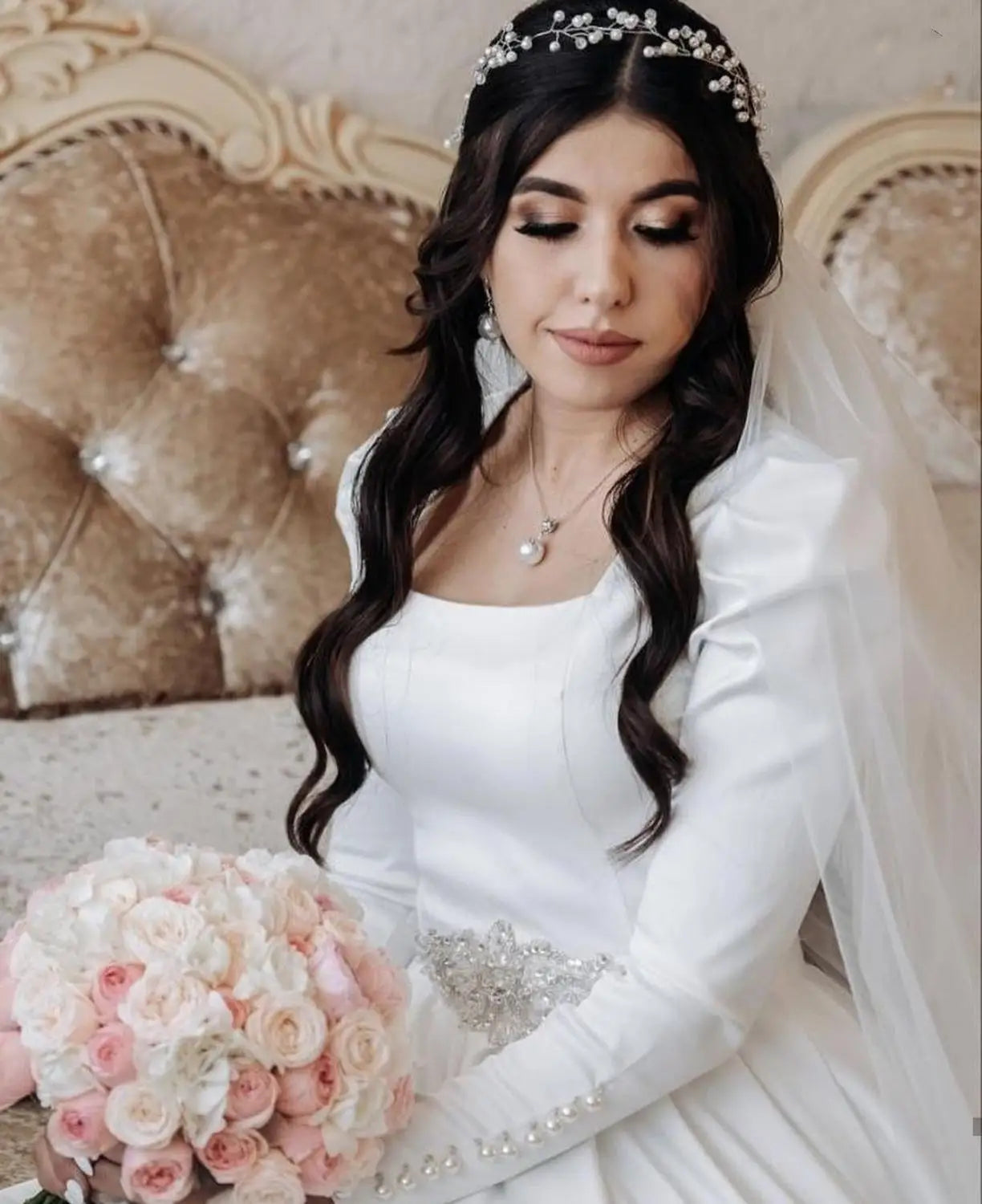 Elegant Satin Wedding Dress Long Sleeve Court Trian Square Collar Neck White For Princess Women Bridal Gowns customized
