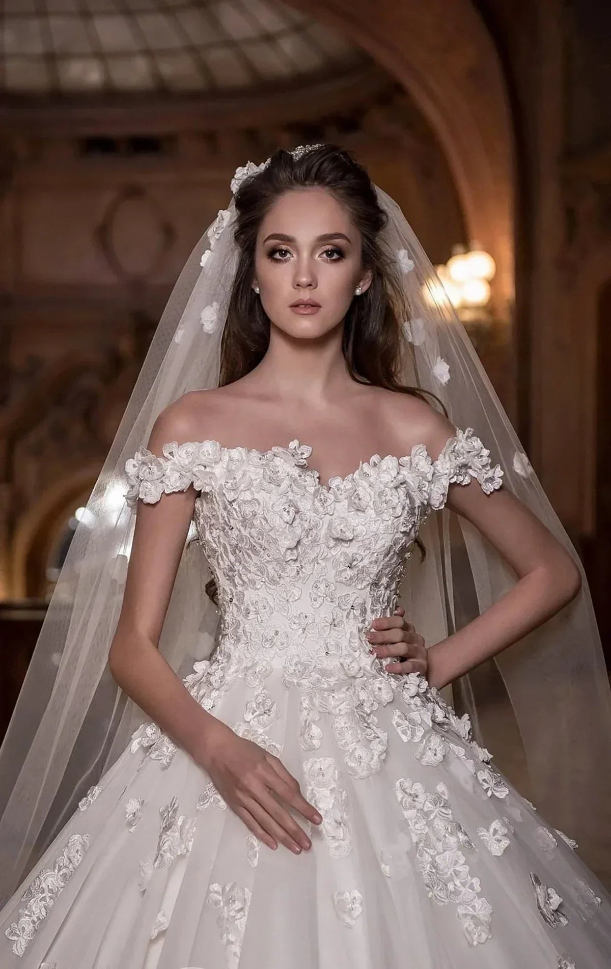 Elegant Wedding Dresses 3D-Flower Ball Gowns Off The Shoulder Beading Vestidos De Novia Customized plus Size Bride Dress