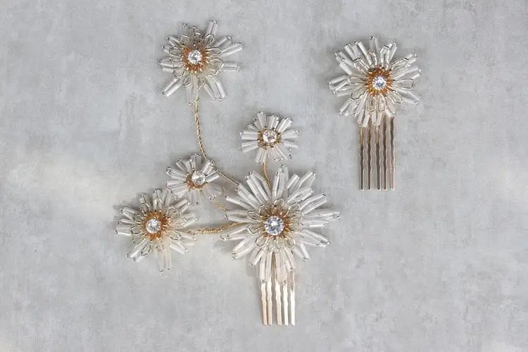 Flower Floral Headpieces Rhinestones Crystal Hair Clips Combs For Women Girl Brides Hairpins Wedding Accessories Bridal Jewelry