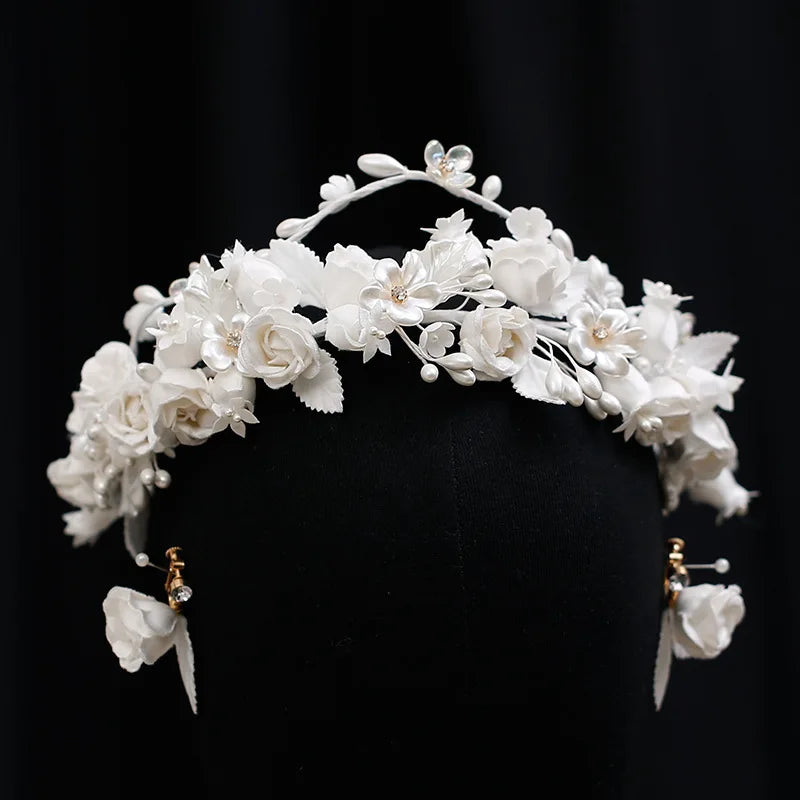Flower Floral Tiaras and Crowns Pageant Prom Headbands For Brides Women Girl Headpieces Wedding Hair Accessories Bridal Jewelry