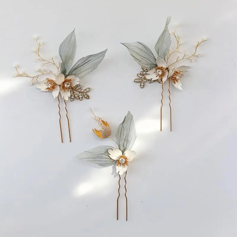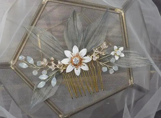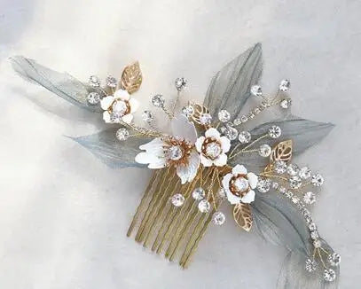 Flower Leaf Headband Headpieces Crystal Pearl Hair Comb Pins Bridesmaids Bride Hairband Crown Wedding Accessories Bridal Jewelry