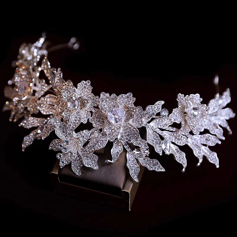 Flower Leaf Tiaras and Crowns Rhinestones Zircon Diadem Brides Pageant Prom Headpiece Bridal Jewelry Wedding Hair Accessories