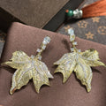 Gold Color AAA Zircon Bridal Earrings Leaf CZ Cubic Zirconia Wedding Earring For Bride Women Accessories Jewelry Birthday Gift