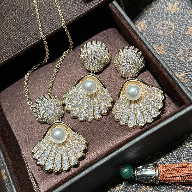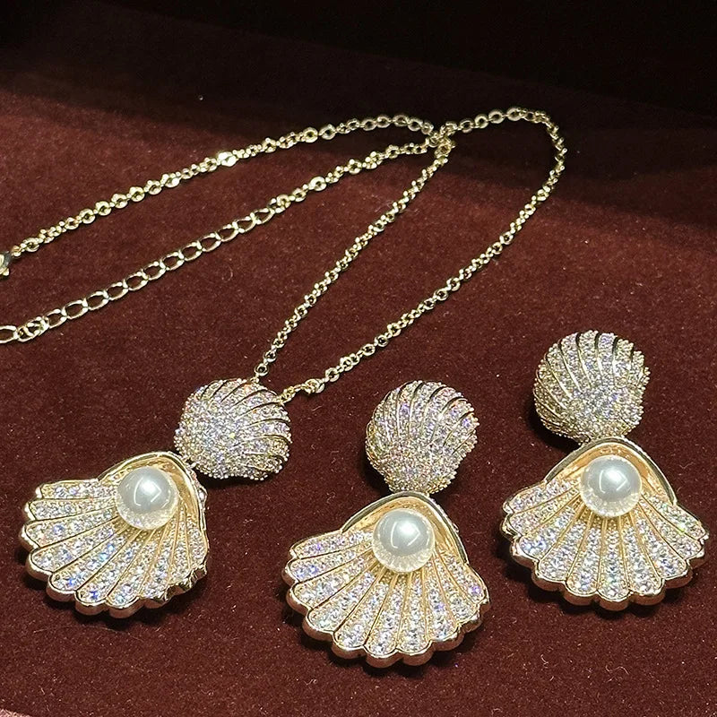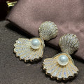 Gold Color Pearl AAA Zircon Bridal Earrings CZ Cubic Zirconia Wedding Earring For Brides Accessories Women Birthday Gift Jewelry