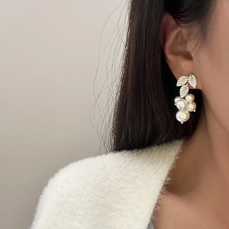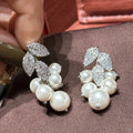 Leaf Pearl Zircon Bridal Earrings Silver Color Zirconia Wedding Earring For Brides Bridesmaids Accessories Women Gift Jewelry