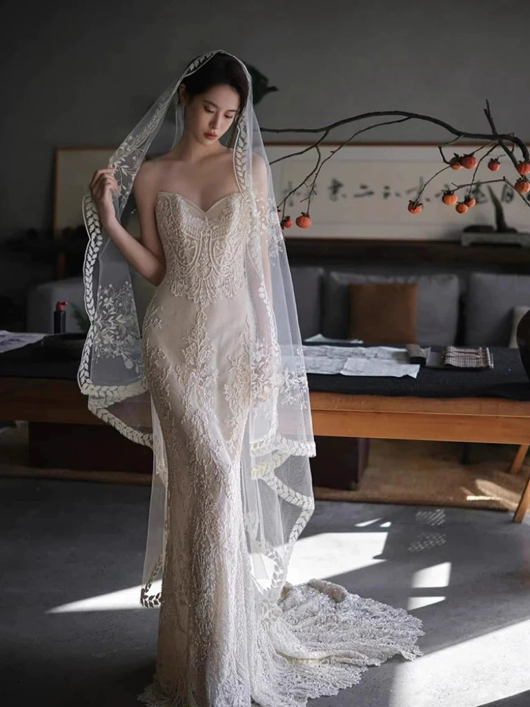 Long Bridal Veil Flower Lace Wedding Veils For Evening Party Dress Women Girl Hair Accessories Brides Jewelry
