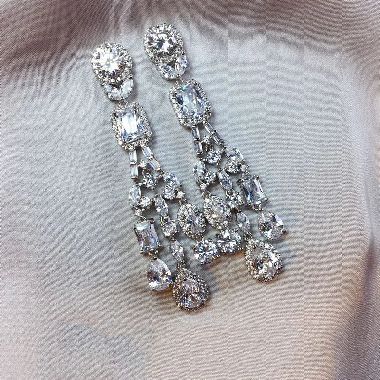 Luxury AAA Zircon Bridal Earrings Cubic Zirconia Wedding Drop Earring For Brides Accessories Women Party Evening Dress Jewelry