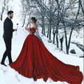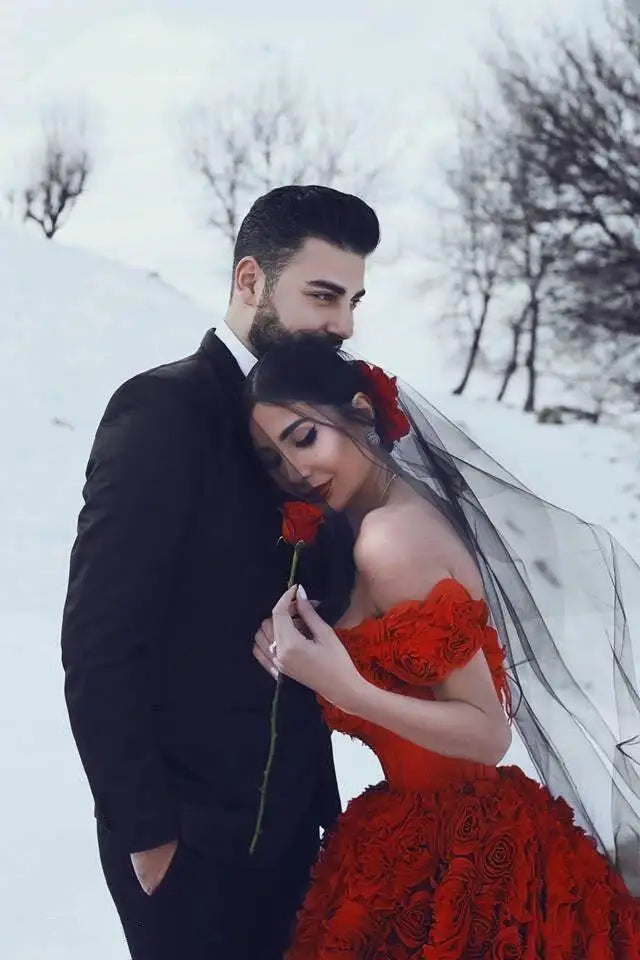 Luxury Plus size Gorgeous Red 3D Flowers V Neck Wedding Dresses Mariage Sexy Bridal Dress Wedding Gowns customized