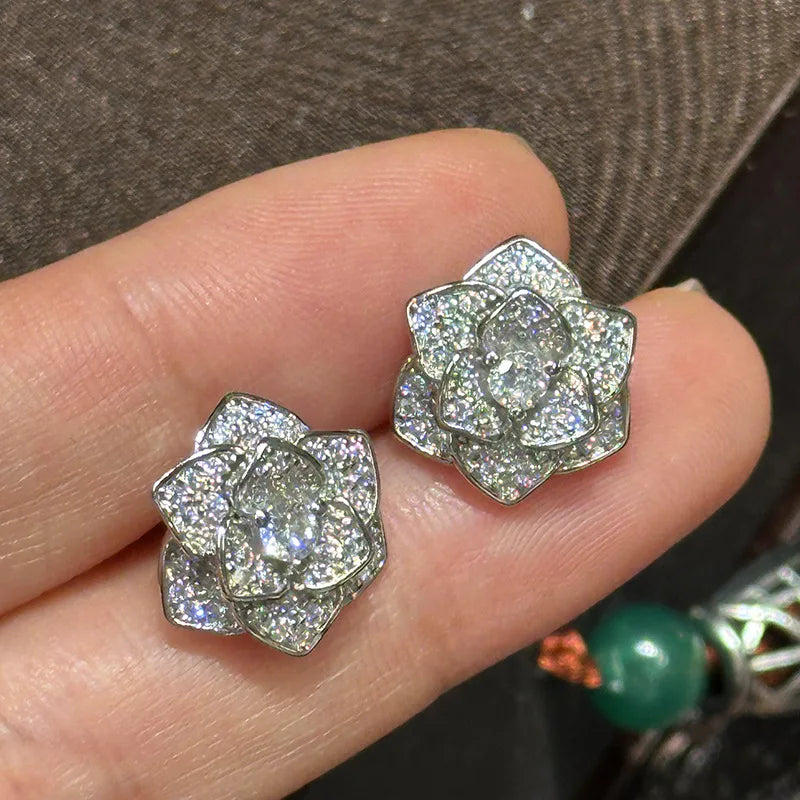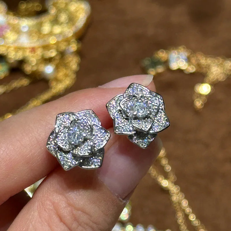 Luxury Rose Flower AAA Zircon Bridal Earrings Cubic Zirconia Wedding Earring For Bride Women Accessories Jewelry Party Dress