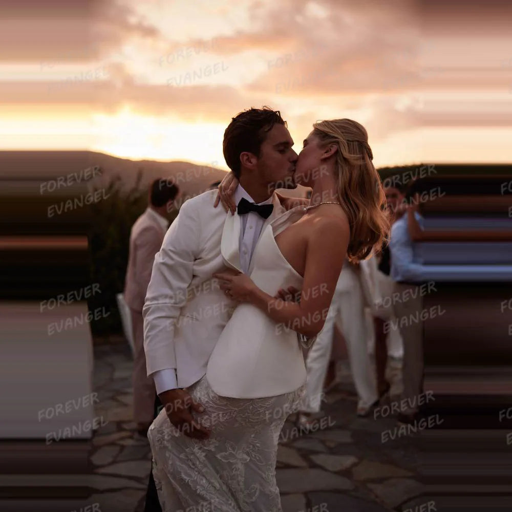 Luxury Sexy Wedding Dresses Mermaid Woman Satin Lace Applique Bride Gowns Sleeveless Backless Party Customized Vestidos De Novia