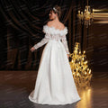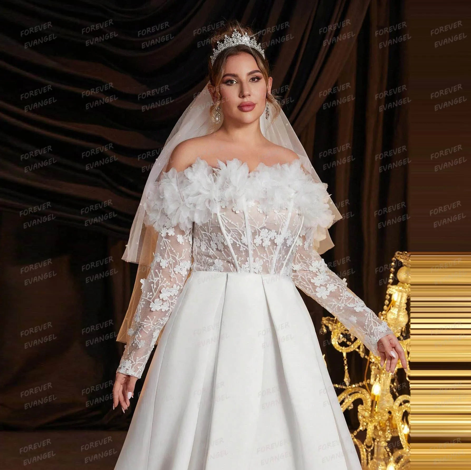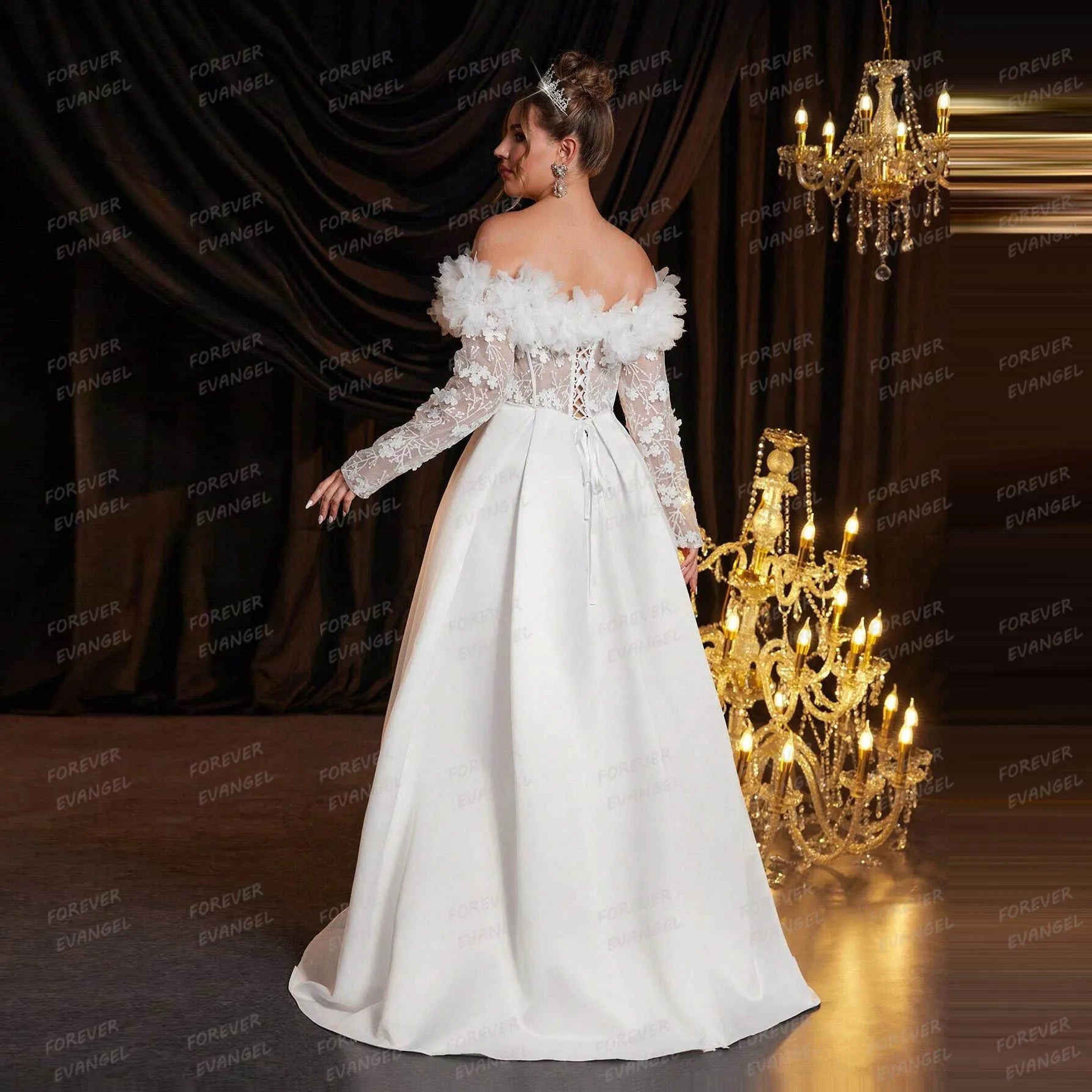 Luxury Wedding Dresses A Line Woman's Appliques Off Shoulder Bride Gowns Lace Long Sleeve Satin Vestidos De Novia Customized