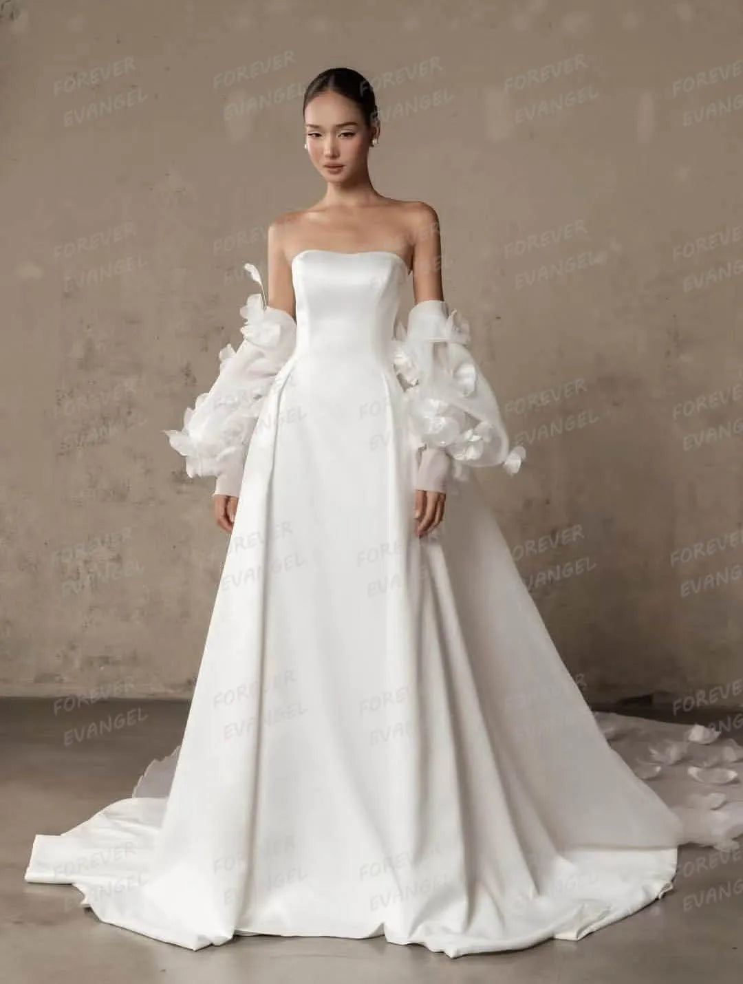 Luxury Wedding Dresses Woman A Line Sleeveless Elegant Satin Backless Bride Gowns Customized Sweep Train Vestidos De Novia Party