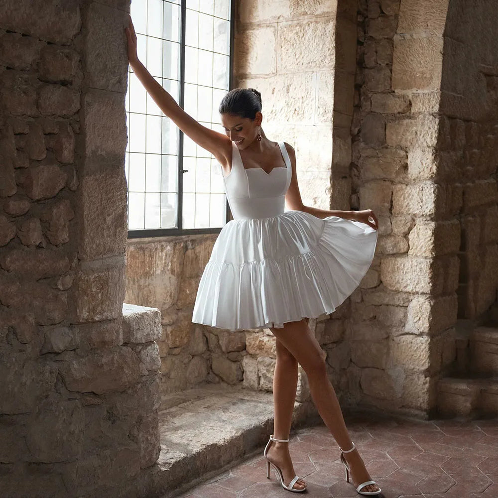 Mini Sexy Wedding Dresses 2025 Spaghetti Straps Bride Dress Short A line Brides Dance Dress Customized Wedding Party Dress