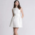 Mini Short Wedding Dresses White Simple Scoop Neck Satin Sleeveless Bridal Bride Gowns V Back With Bow Vestido De Noiva Custom