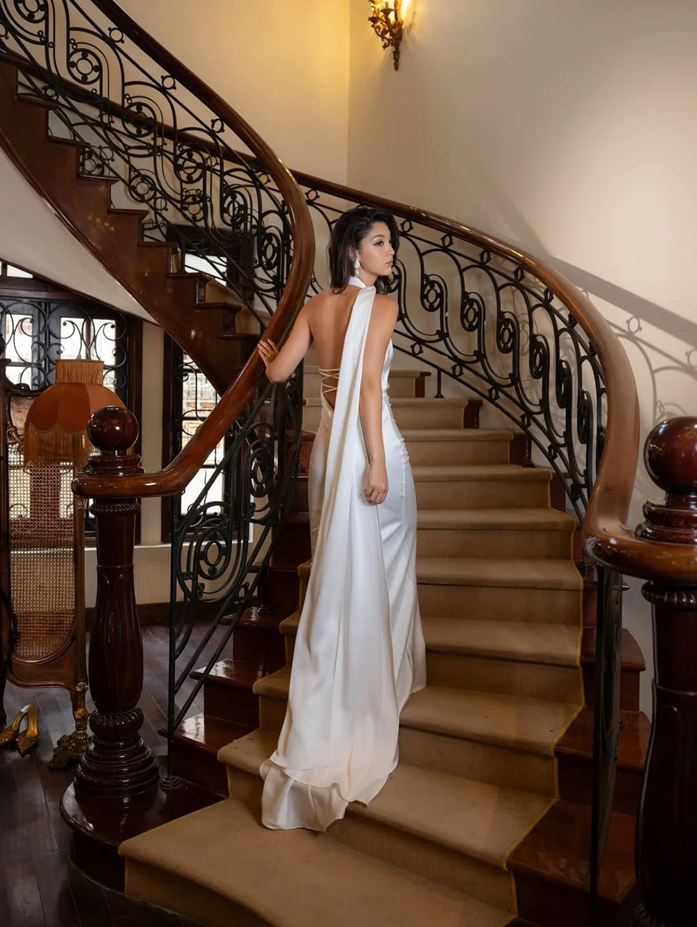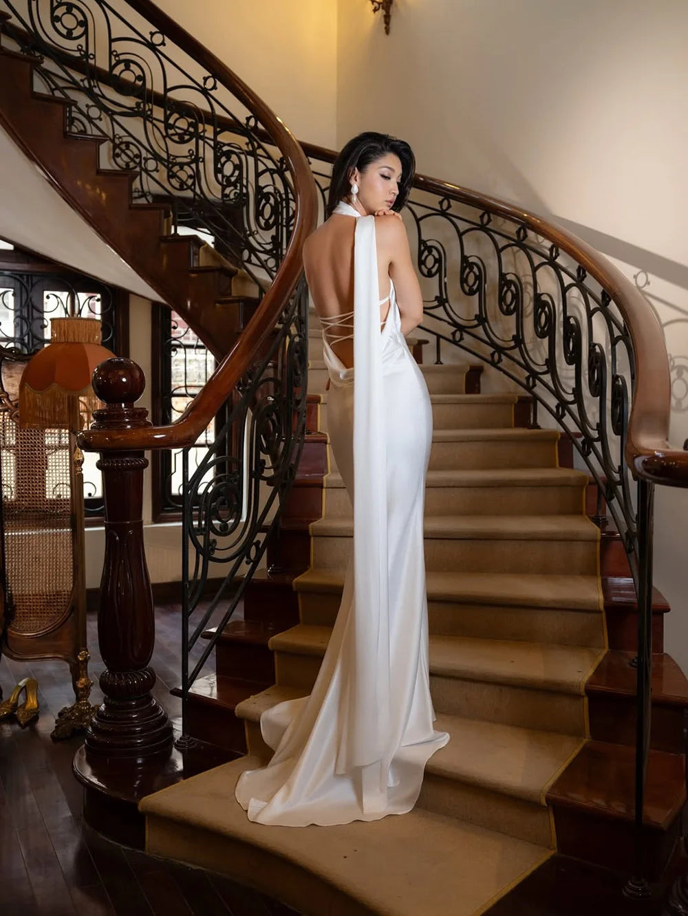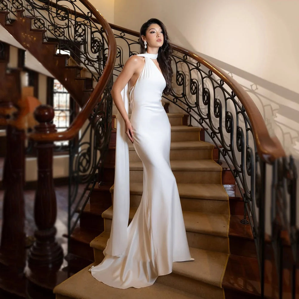 Modern Wedding Dresses 2025 Civil Mermaid Satin Sexy Open Back Simple Evening Bridal Dress for Women Wedding Gown Customized