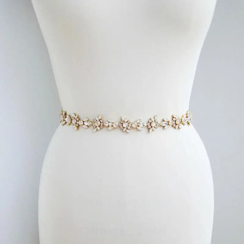 Opal Crystal Wedding Belts Sash Rose Gold Silver Color Bridal White Ivory Champagne Ribbon Party Dress Jewelry Bride Accessories