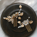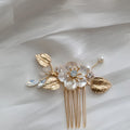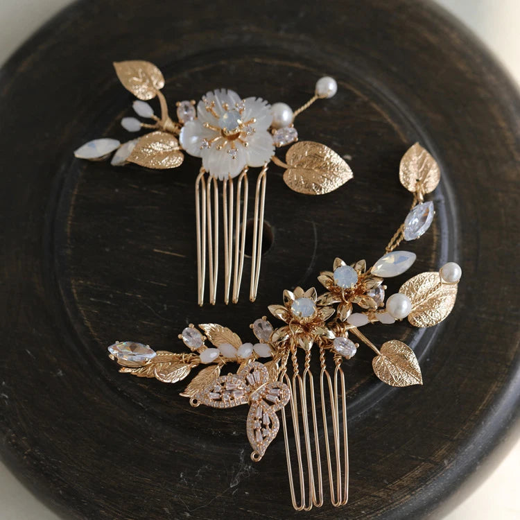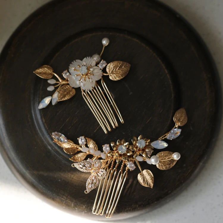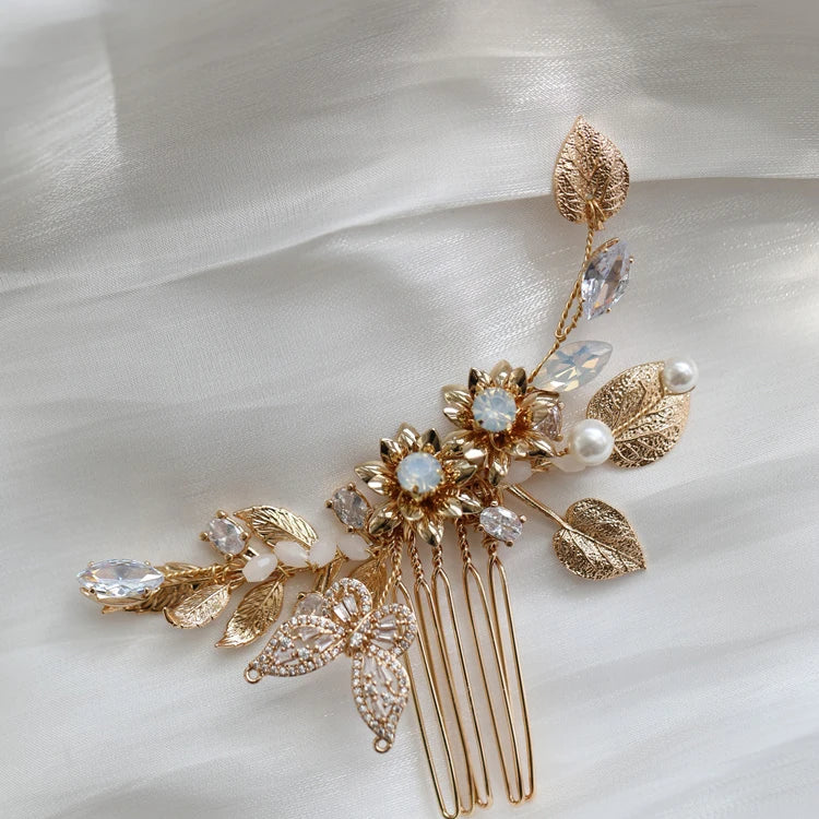 Opal Rhinestones Crystal Hair Comb Pin Clip Gold Color Head Piece Brides Flower Leaf Hairpins Wedding Accessories Bridal Jewelry