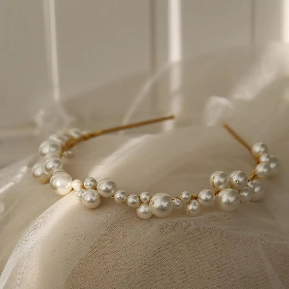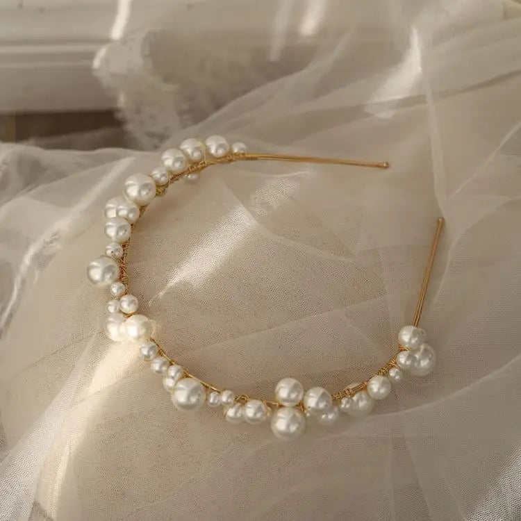 Pearls Beaded Headband Headpiece Vintage Tiara Crown For Brides Women Headwear Hairband Wedding Accessories Bridal Hair Jewelry
