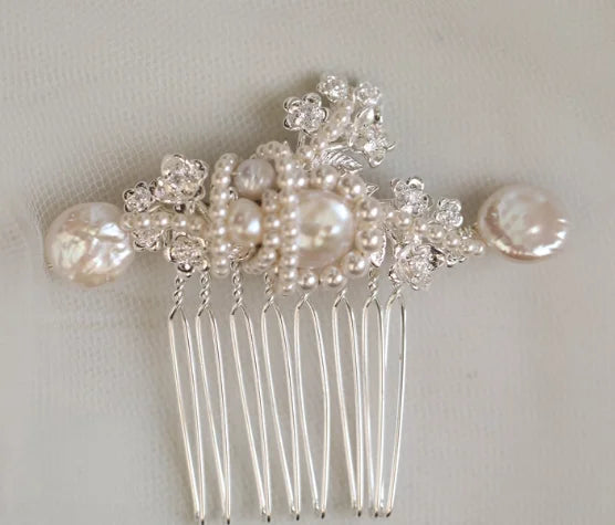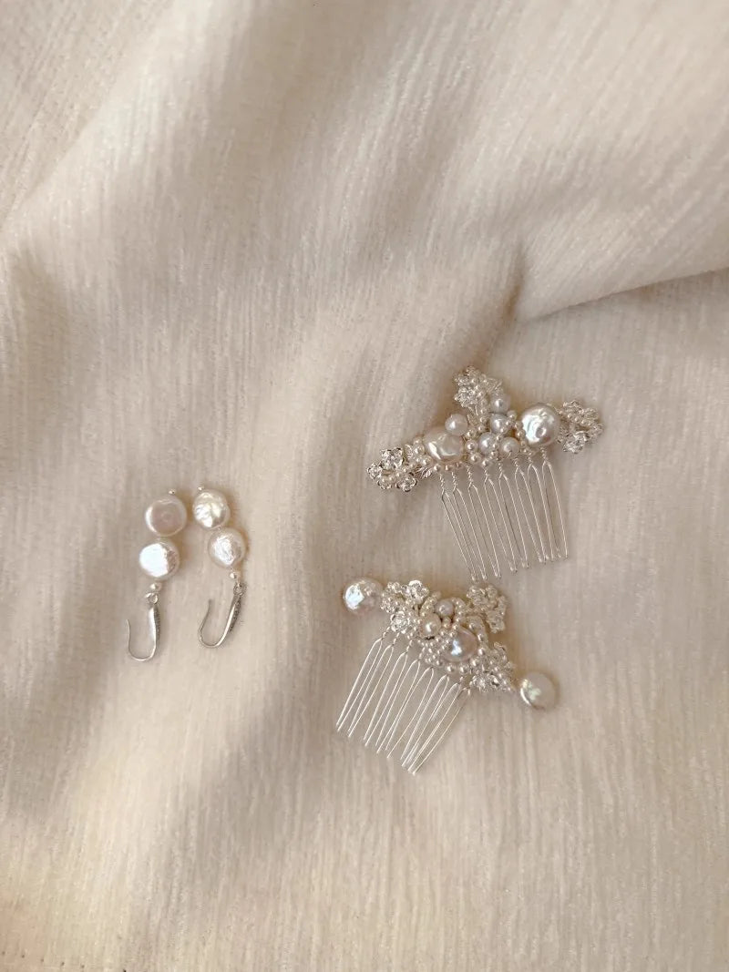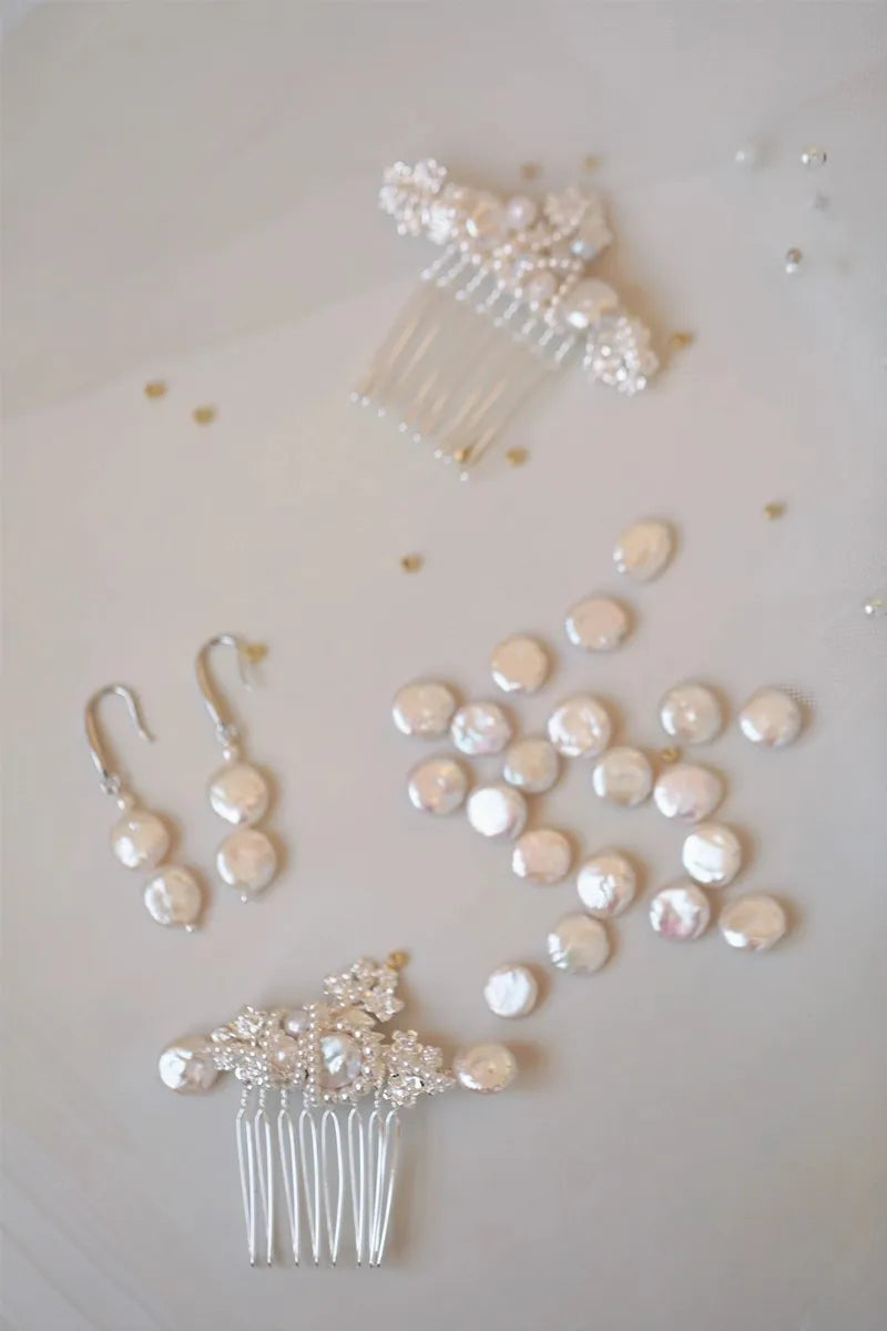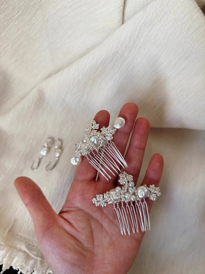 Pearls Hair Comb Pin Clip Silver Color Head Piece For Bride Bridesmaids Women Hairpin Earring Bridal Jewelry Wedding Accessories