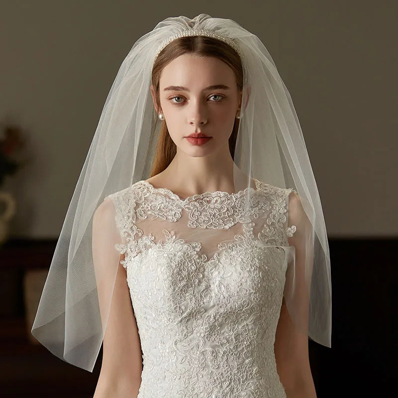 Pearls Headbands Headpieces Lace Veil Headdress Bride Women Girl Birthday Gift Hairbands Wedding Hair Accessories Bridal Jewelry