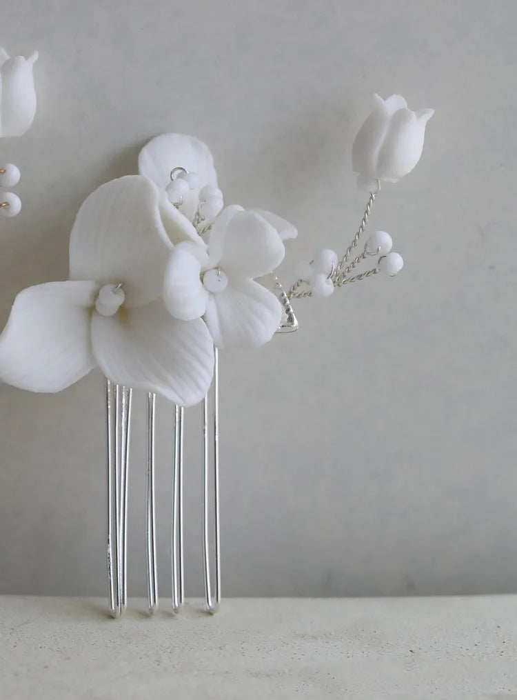 Porcelain Flower Hair Comb Pin Clip Gold Silver Color Head Piece Brides Bridesmaids Hairpin Wedding Accessories Bridal Jewelry