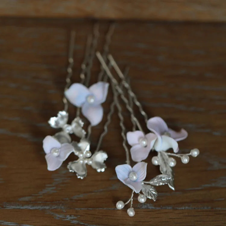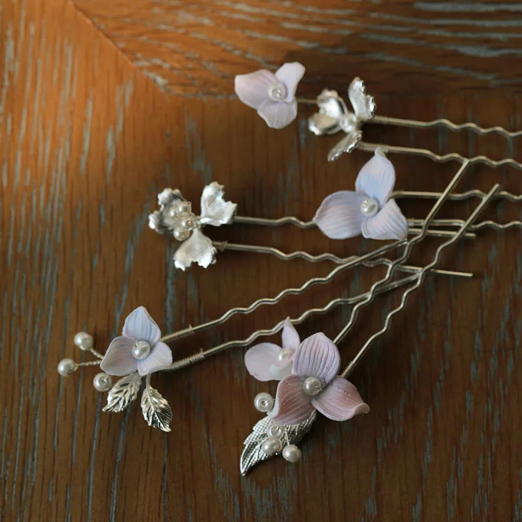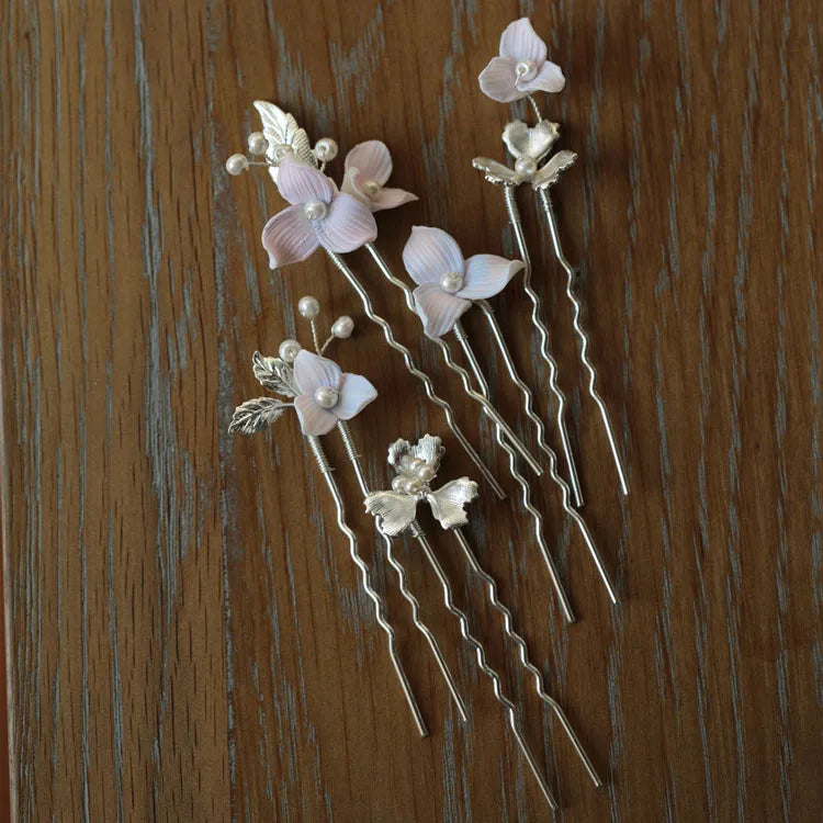 Porcelain Flower Hair Pin Clip Silver Color Head Piece For Bride Bridesmaids Women Hairpins Wedding Accessories Bridal Jewelry