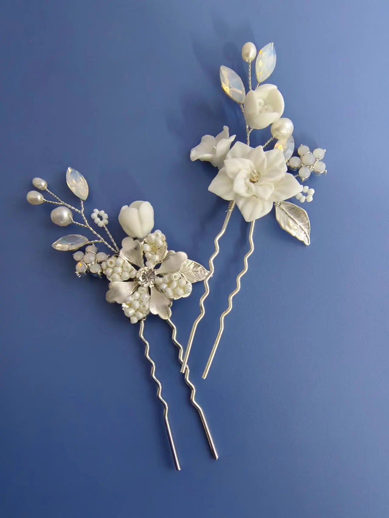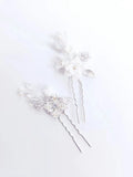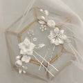 Porcelain Flower Hair Pin Clip Silver Color Head Piece For Brides Women Pearl Opal Hairpins Wedding Accessories Bridal Jewelry