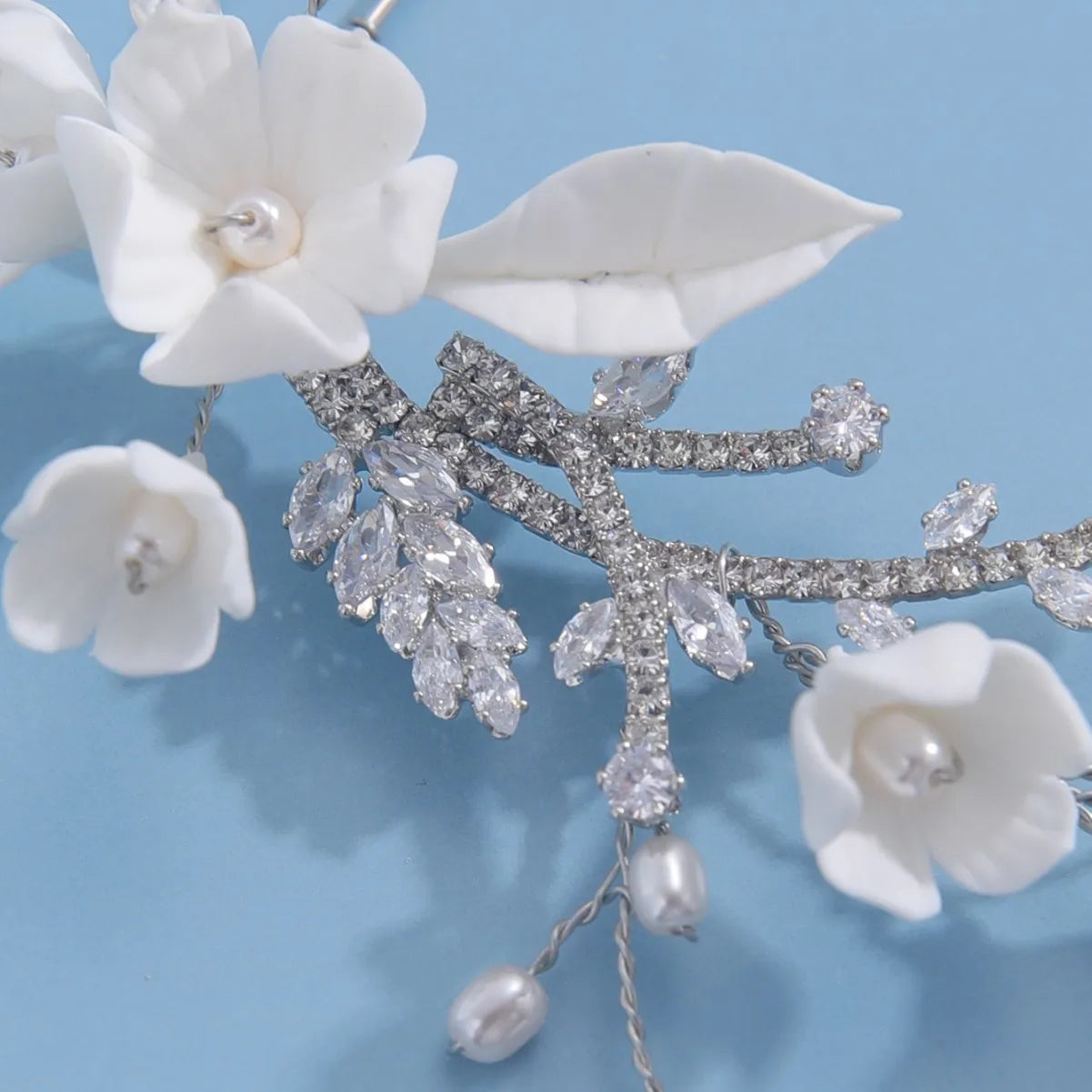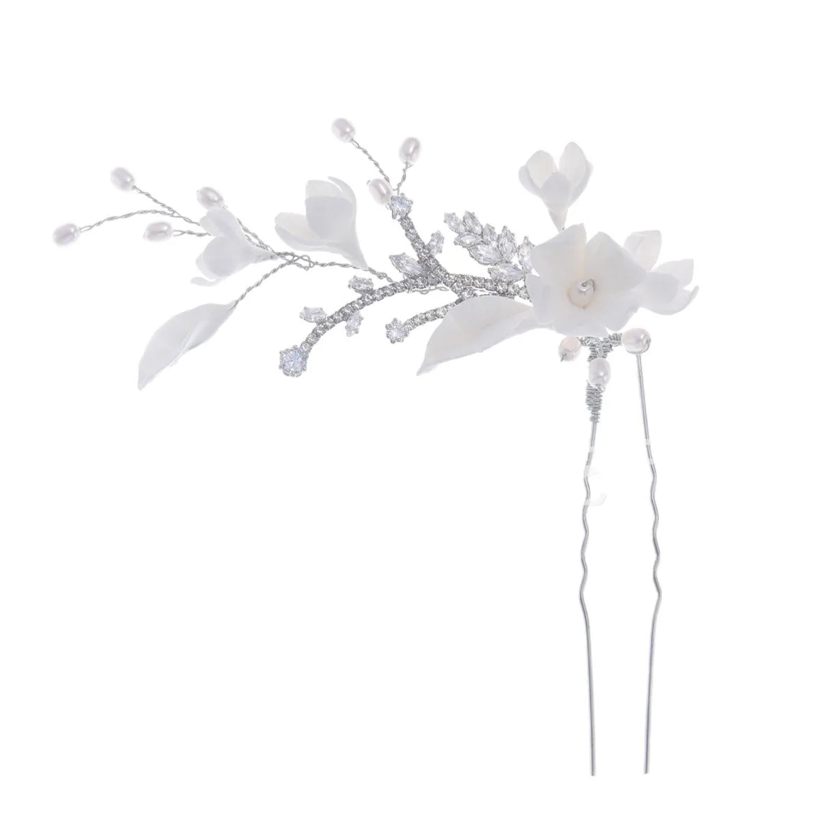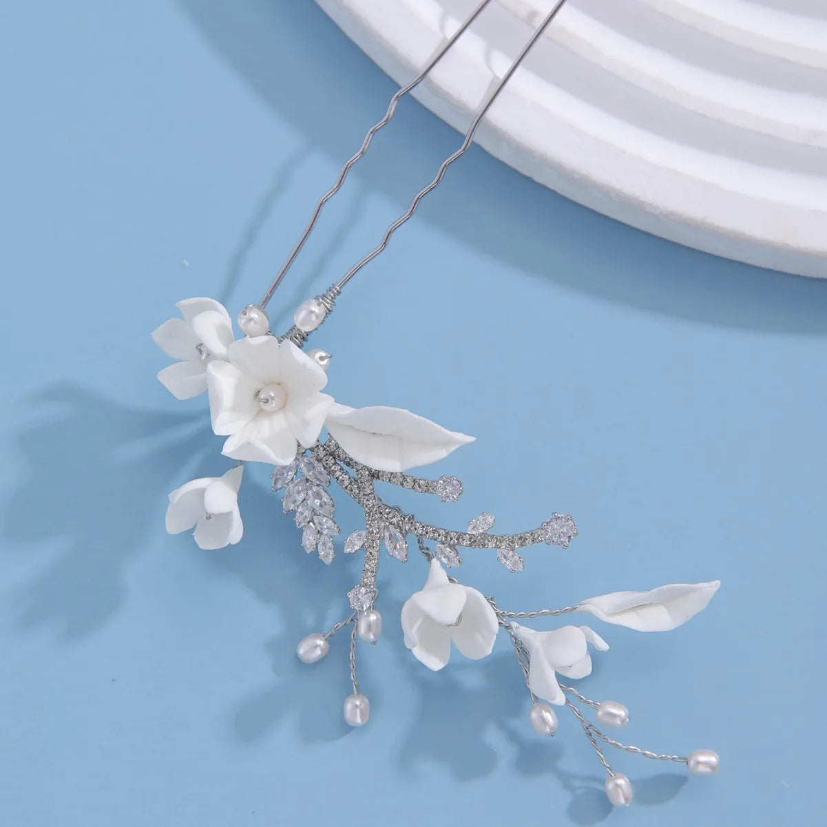 Porcelain Flower Hair Pin Clip Zircon Hairpin Brides Bridesmaids Silver Color Head Pieces Wedding Accessories Bridal Jewelry