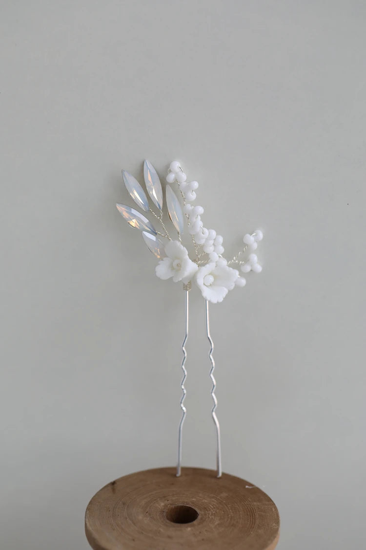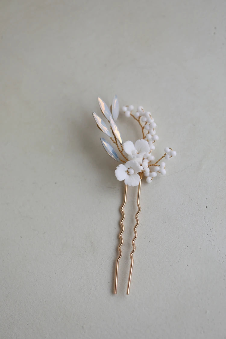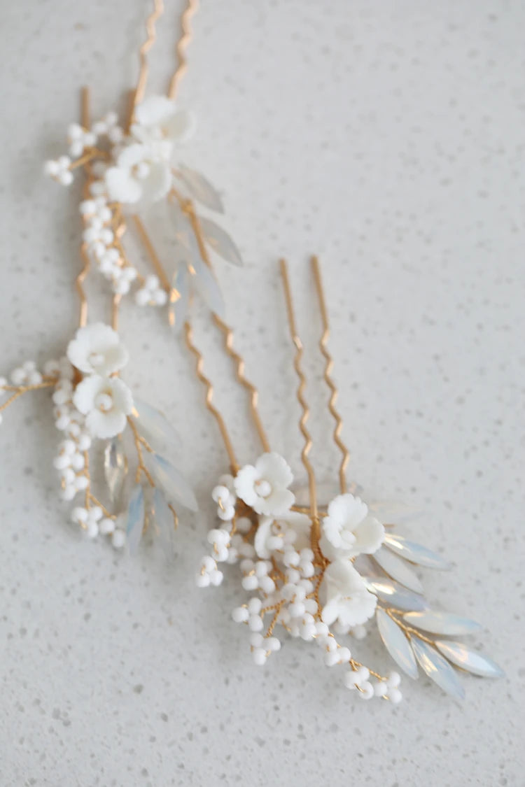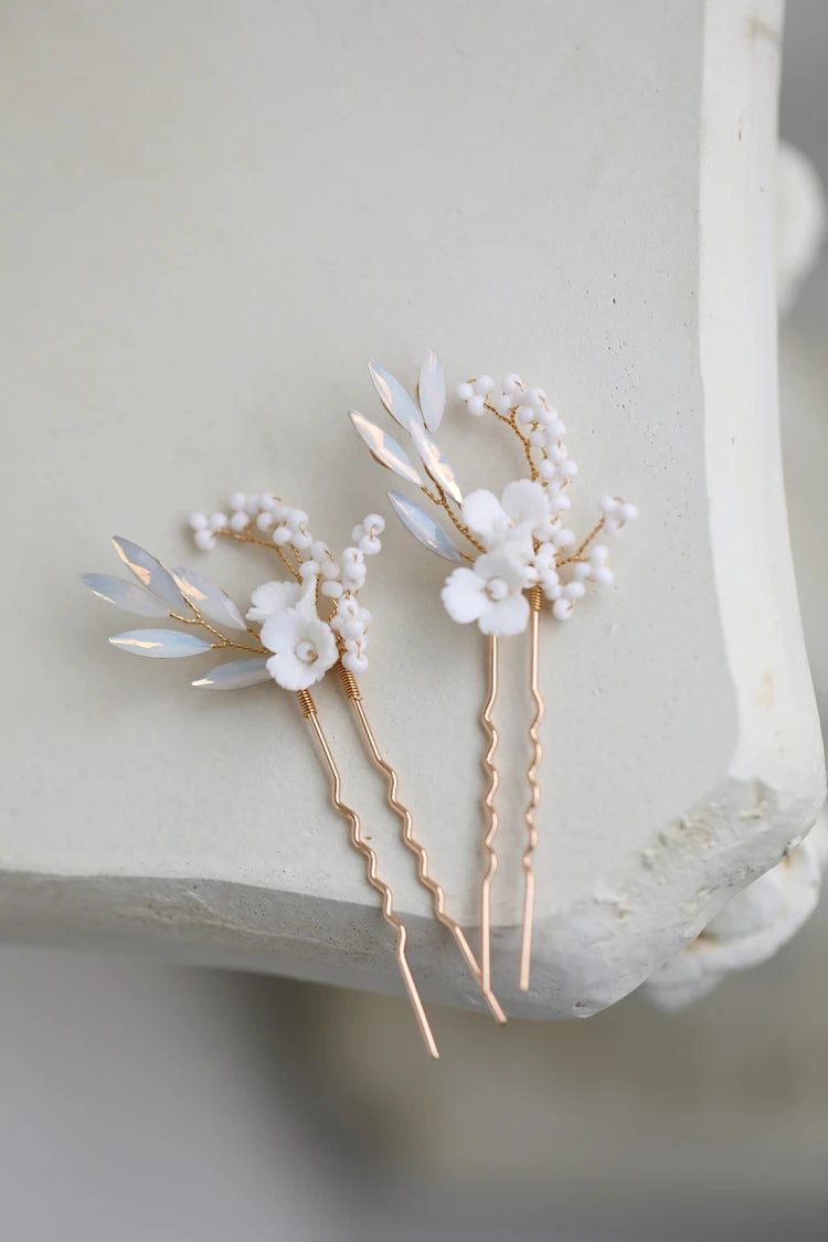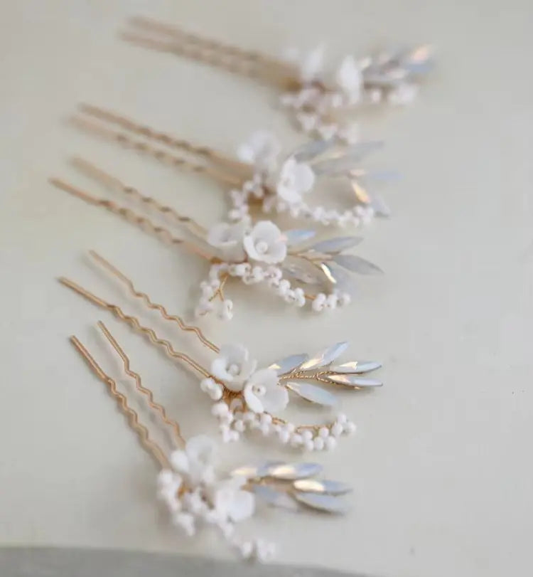 Porcelain Flower Hair Pins Clips Opal Head Pieces Gold Silver Color Hairpins For Brides Women Bridal Jewelry Wedding Accessories