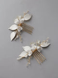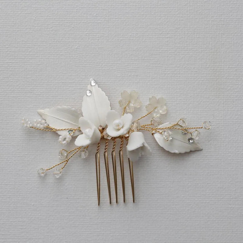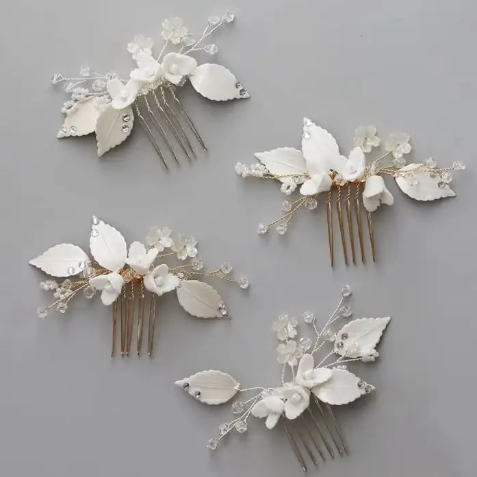 Porcelain Flower Head Piece Leaf Hair Comb Clip Pin For Bride Bridesmaids Women Hairpins Bridal Jewelry Wedding Accessories