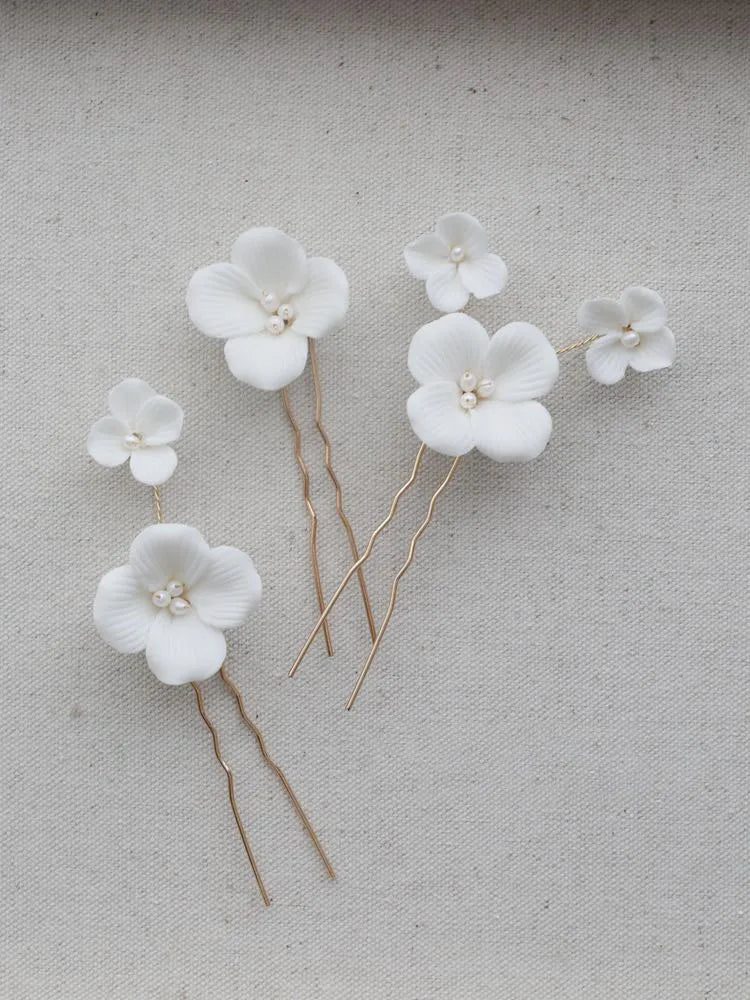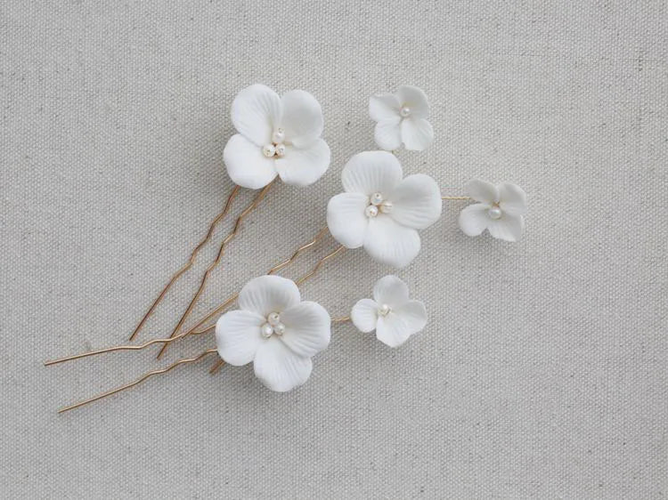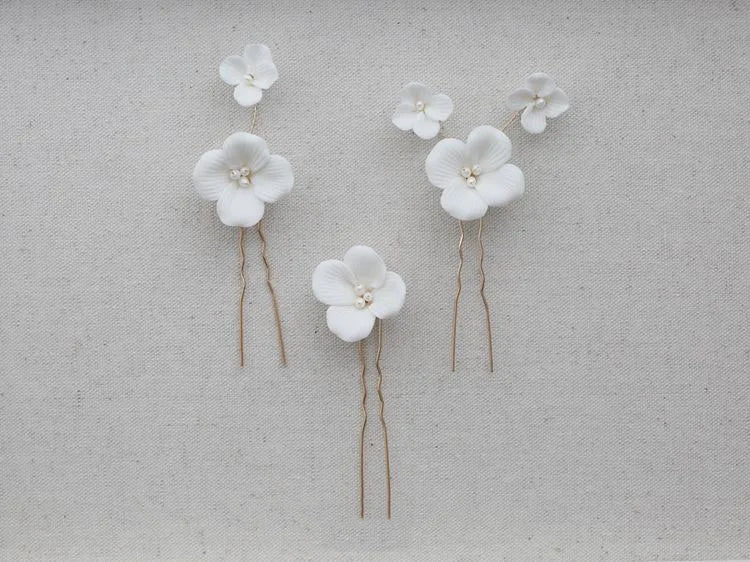Porcelain Flower Head Pieces Freshwater Pearl Hairpins For Brides Bridesmaids Hair Pins Clips Wedding Accessories Bridal Jewelry