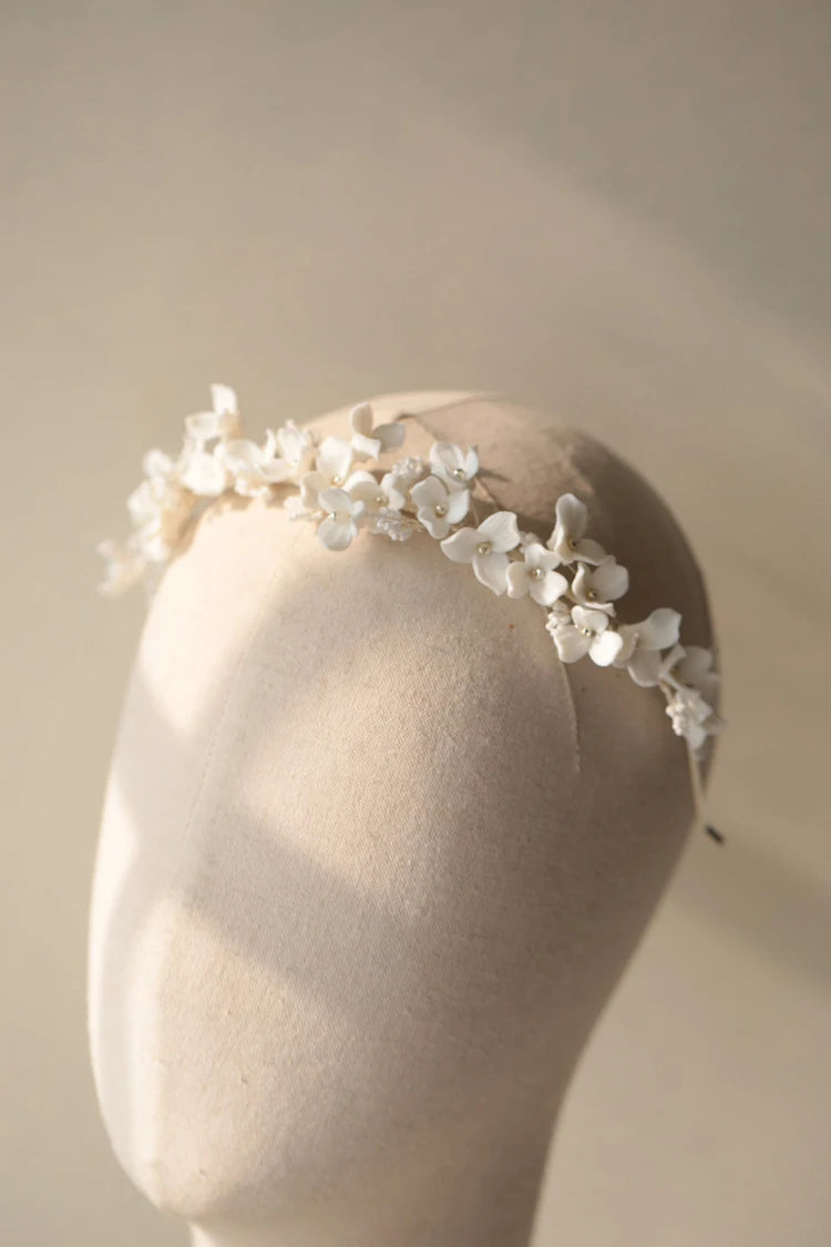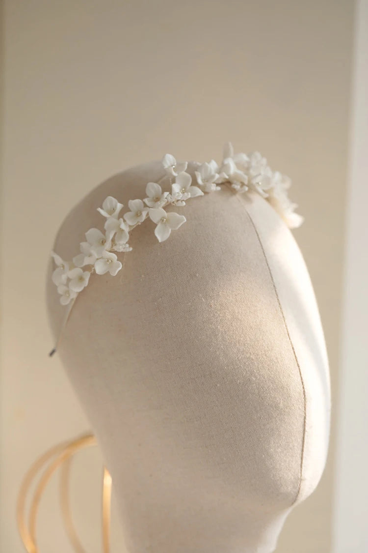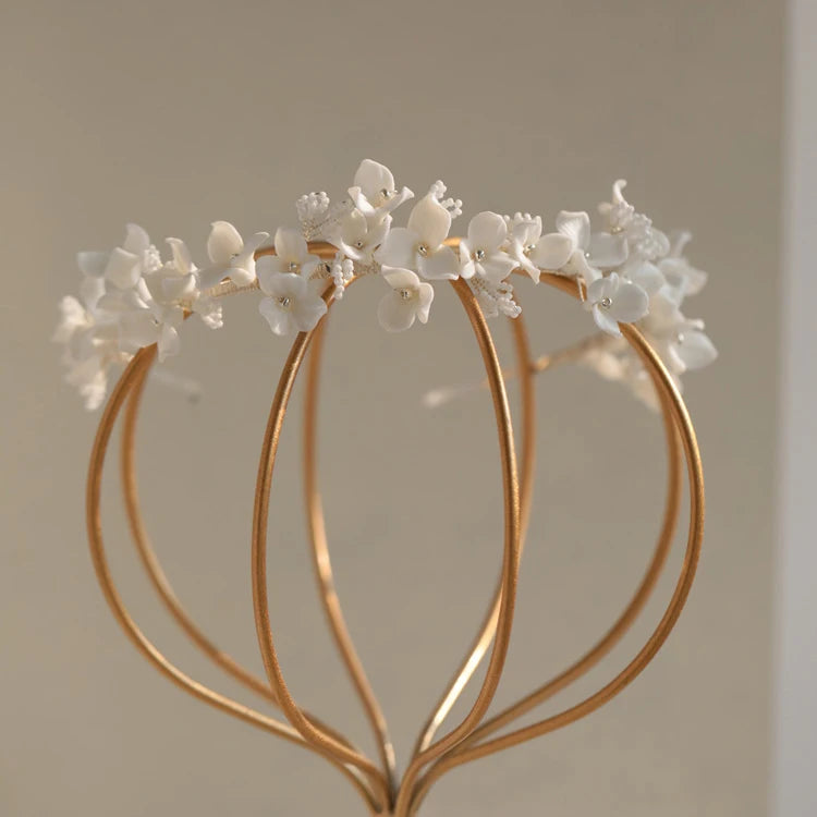 Porcelain Flower Headband Hairband For Bride Silver Color Headpiece Headdress Headwear Bridal Jewelry Wedding Hair Accessories