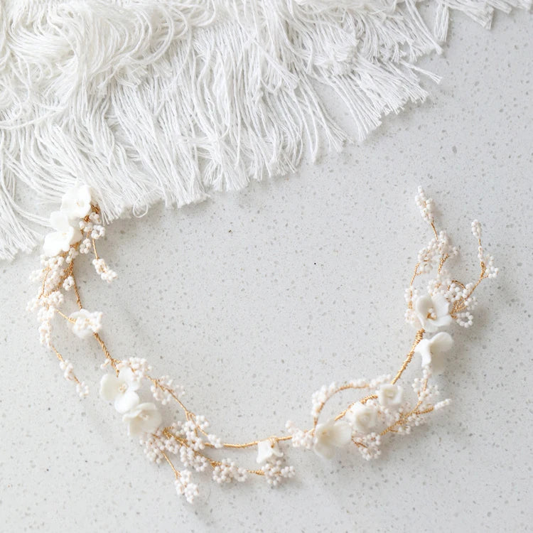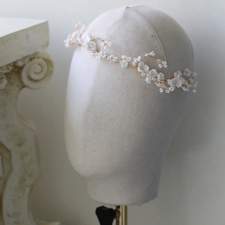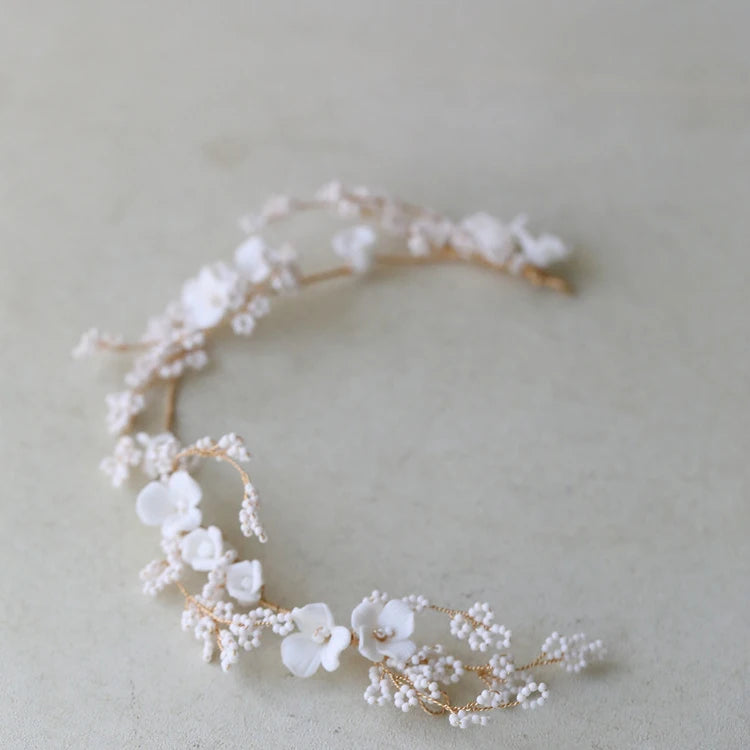 Porcelain Flower Headband Hairband Gold Color Headpiece For Brides Women Girl Headdress Bridal Jewelry Wedding Hair Accessories