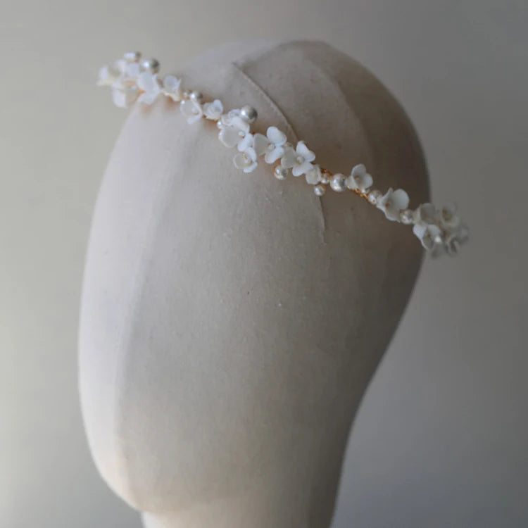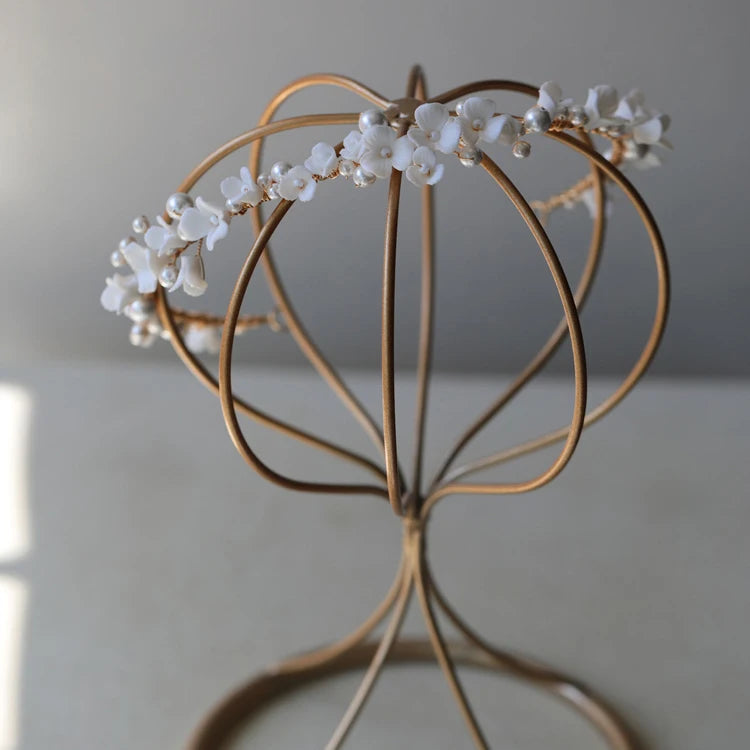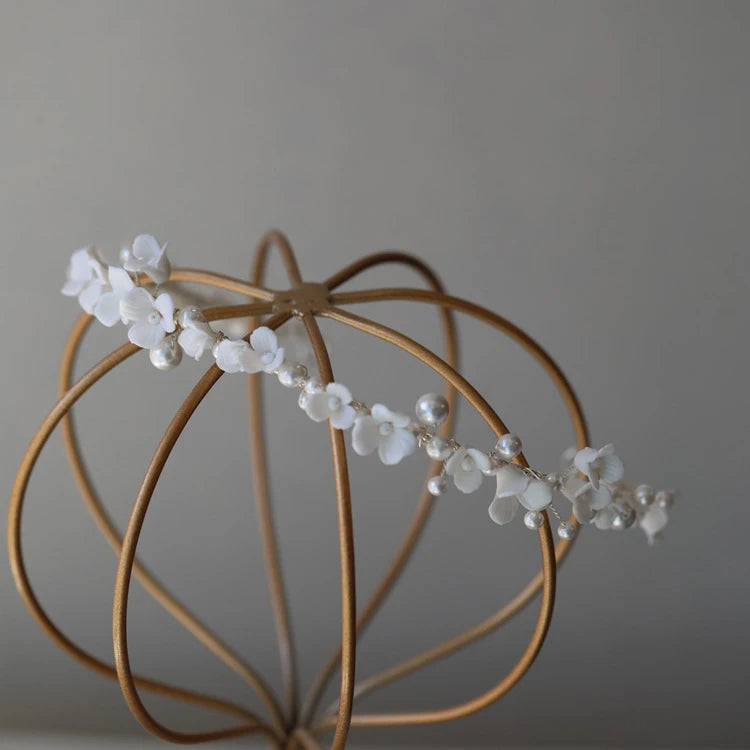 Porcelain Flower Headband Hairband Pearl Headpiece For Brides Women Headdress Headwear Wedding Hair Accessories Bridal Jewelry