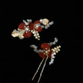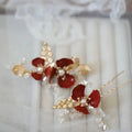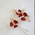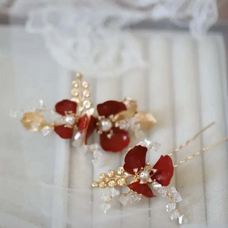 Red Flower Hair Pin Clip Leaf Head Piece For Brides Women Pearl Hairpin Party Dinner Dress Bridal Jewelry Wedding Accessories