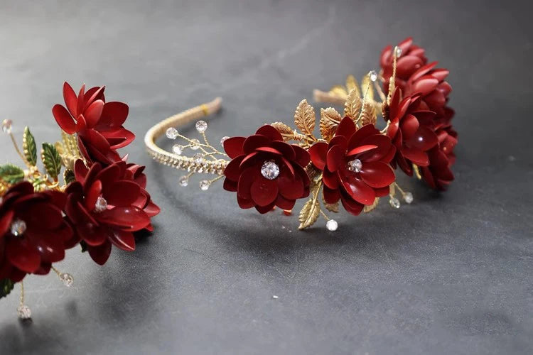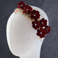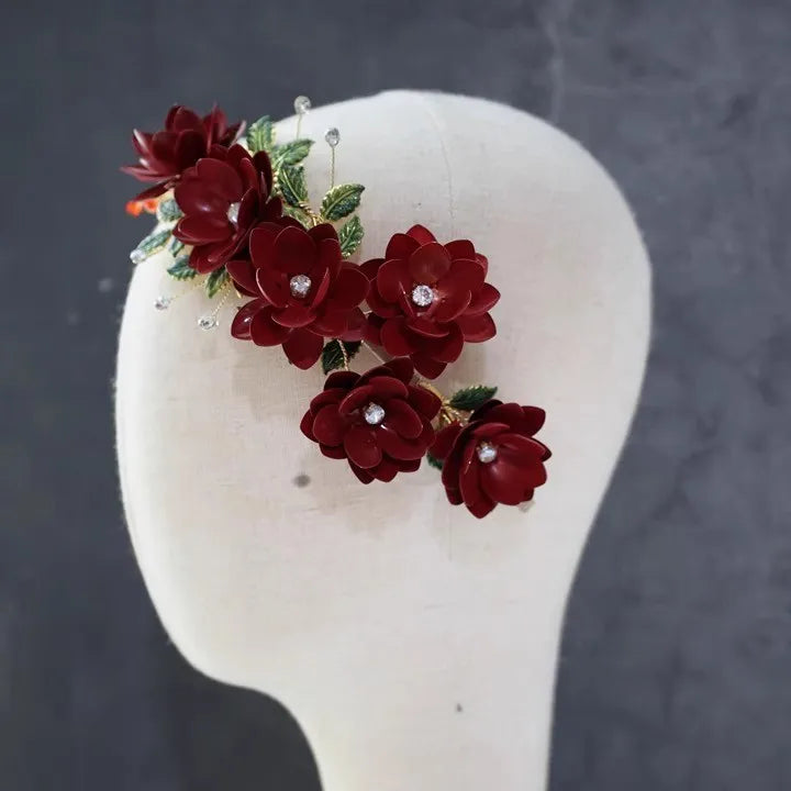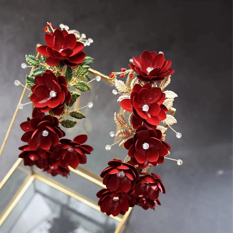 Red Flower Headband Hairband Crystal Headpiece Headwear For Bride Tiara Crown Headdress Bridal Jewelry Wedding Hair Accessories